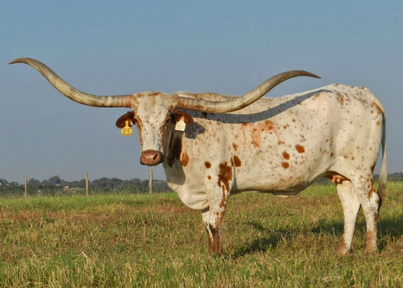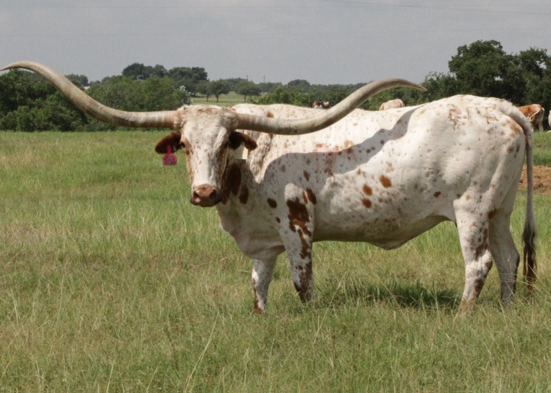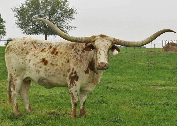 It is with great sadness that we announced the passing of RM Miss Kitty. She was born on October 1st, 2004, and was laid to rest on January 7th,2021. She was sire by Gunsmoke and out of Phenomenon’s Classy Lady. In her time she graced the covers of the Texas Longhorn TLBAA Trails magazines sporting her huge twisting horns. She won TTT, and twist horn trophies at horn measurement competitions. The greatest legacy of a production animal is the offspring that they put on their ground, and this is where our RM Miss Kitty truly shines. Her last owners were Bentwood Ranch and Smith Longhorns. They have produced some outstanding bull prospects from her in this time and are currently awaiting embryo calves to hit the ground and the spring of 2021. In her time she graced the covers of the Texas Longhorn TLBAA Trails magazines sporting her huge twisting horns. She won TTT, and twist horn trophies at horn measurement competitions. The greatest legacy of a production animal is the offspring that they put on the ground, and this is where our RM Miss Kitty truly shines. She produced a son, Dillon, with Top Caliber, and was produced and promoted by Mike Casey. Dillon had a semen syndication that did quite well. Her daughter with Cowboy Tuff Chex named DC Tuff Kitty sold for $10,000 At the Longhorn Opportunity Spotlight Sale in 2018 as a yearling. Her son Tuff Cowboy DC measures 96” TTT at the age of four and should make 100 “ TTT like his sire and dam at full maturity. With the programs she graced in her time she helped them develop Legendary genetics while developing her own Legacy.